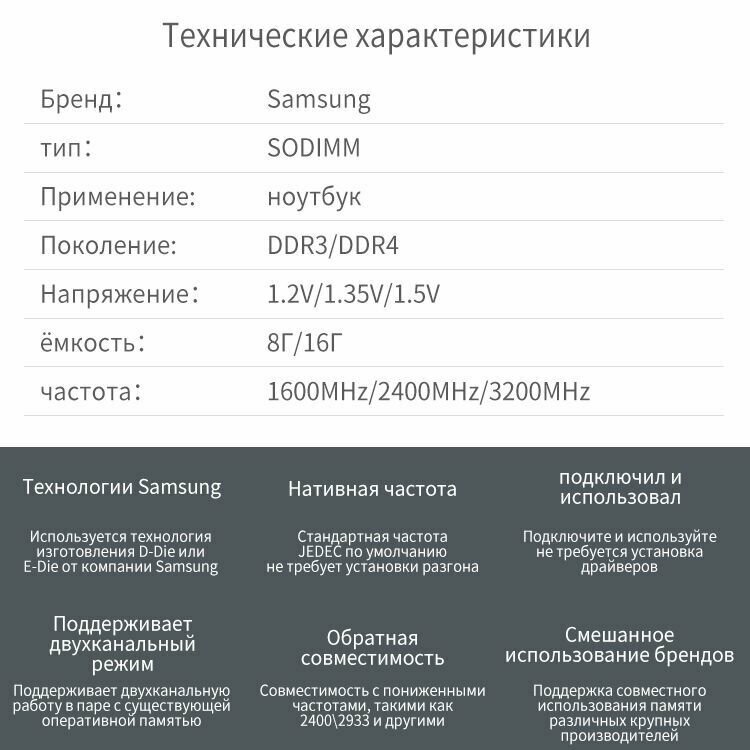 SAMSUNG Оперативная память ноутбука 8G DDR3 1600Mhz Частота интересное: