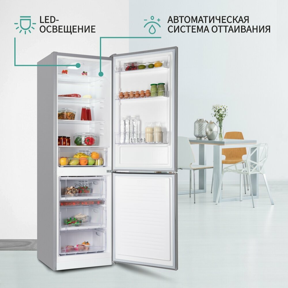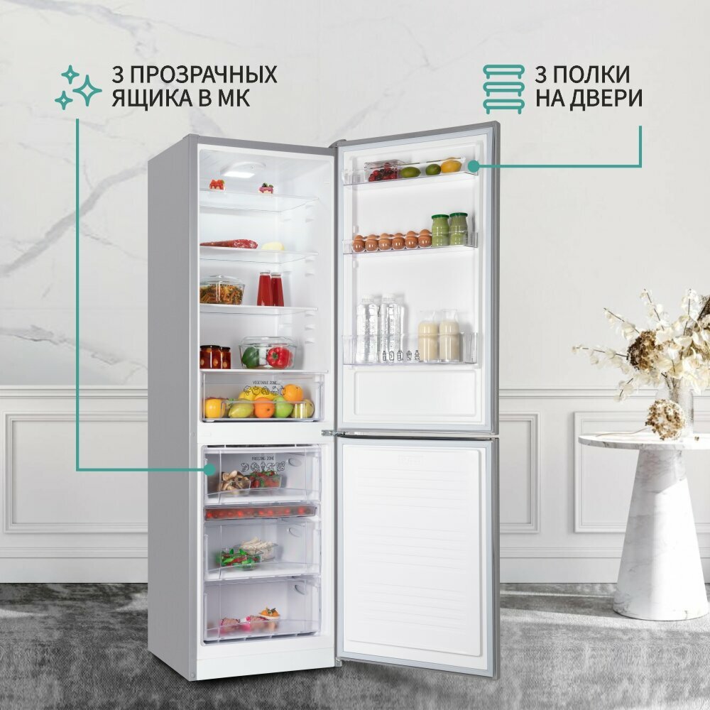 Холодильник NORDFROST NRB 152 I двухкамерный, 320 л объем, серебристый металлик