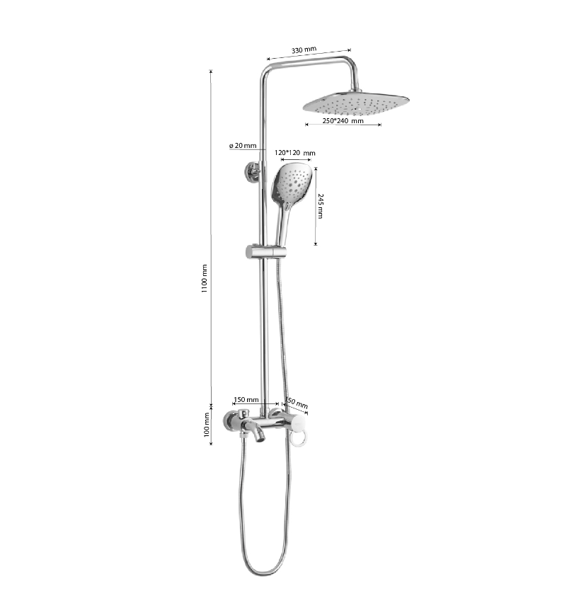 | Дополнительная информация | длина верхнего душа: 260 мм; ширина верхнего душа: 230 мм |