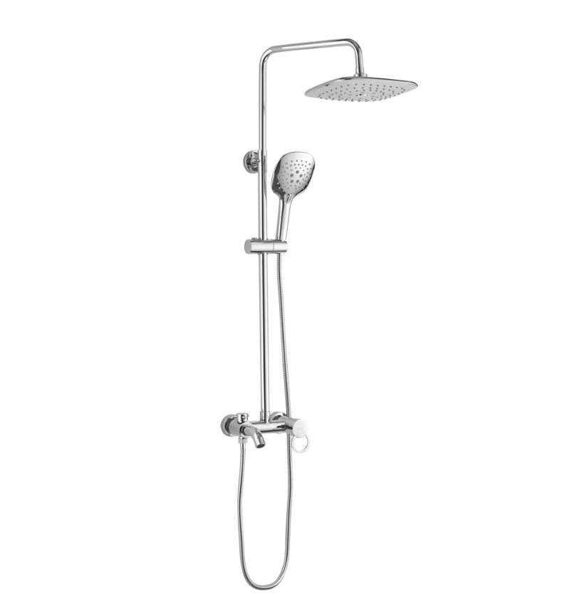 BRIMIX 3074 Смеситель+стойка душевая "тропический душ" с двумя хромированными квадратными лейками