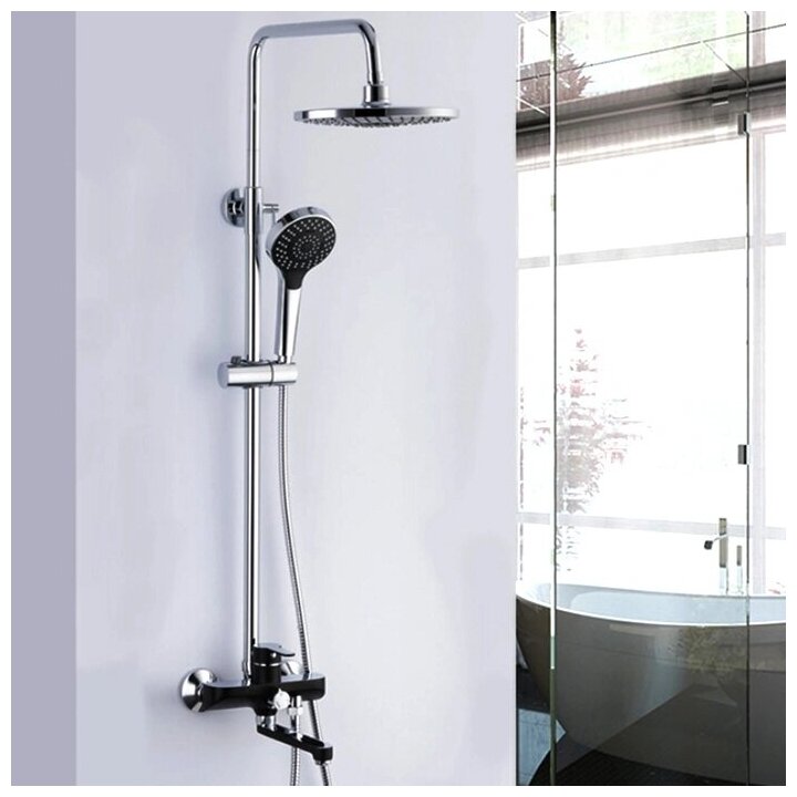 | Дополнительная информация | покрытие черный/хром; высота стойки для душа: 1450 мм; диаметр верхнего душа: 220 мм |