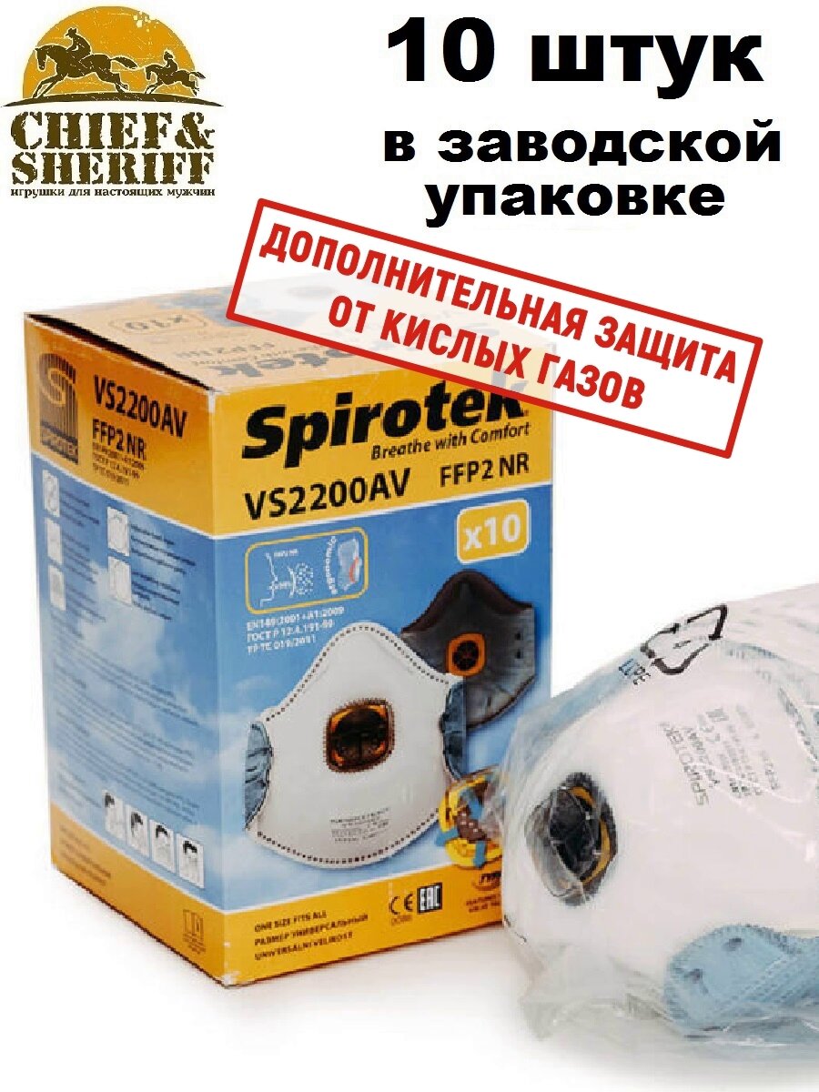 Респиратор Spirotek VS2200AV упаковка 10 шт. FFP2 + кислые газы интересное: