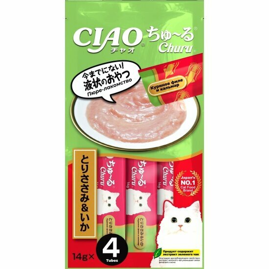Inaba Ciao Churu лакомство-пюре для взрослых кошек с куриным филе и кальмаром - 14 г х 4 шт 4901133947292