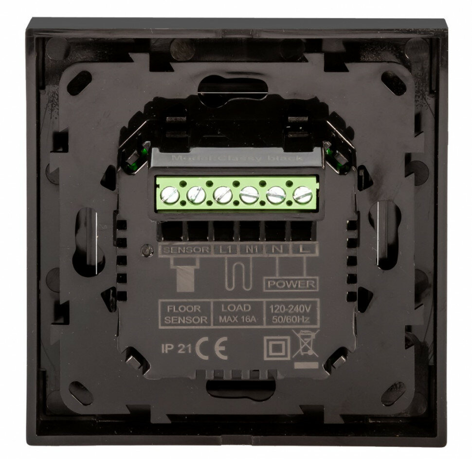 Терморегулятор деви Classy Wi-Fi, с датчиком пола, черный, 16А, (с двумя адаптерами под иные рамки)