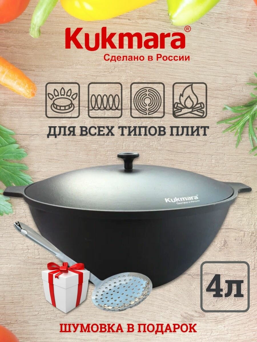 Казан Kukmara чугунный 4л с крышкой (кч041)