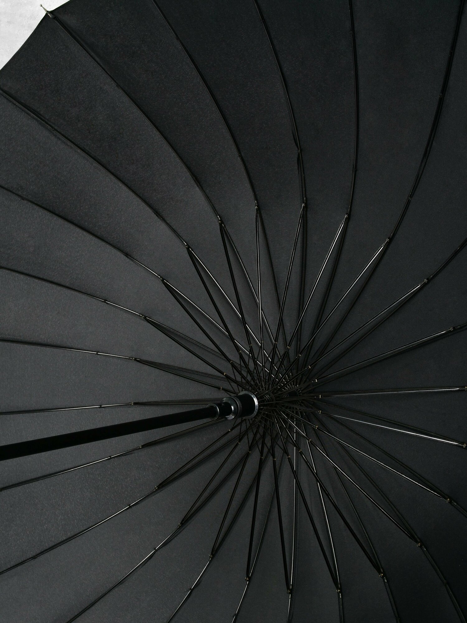 Очень стильный и качественный зонт, с большим количеством спиц, хорошая ветроустойчивость