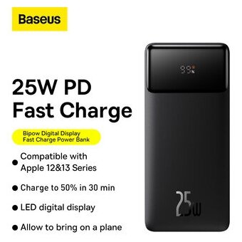 Baseus Power Bank Bipow Digital Display Fast Charge 20000mAh 25W + Cable Type-C - Type-C 60W 50cm Black PPBD020301