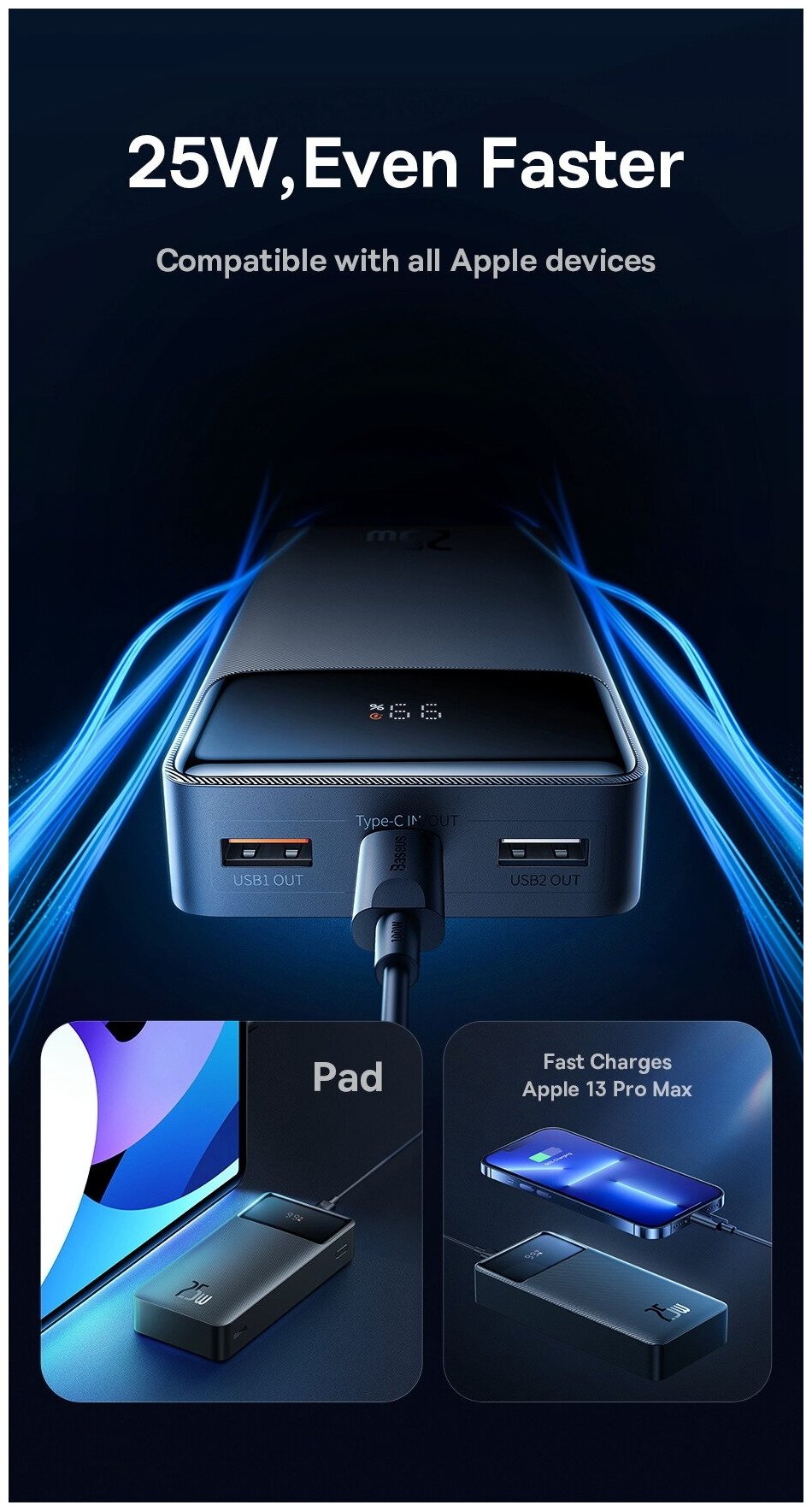 Универсальный внешний аккумулятор Baseus с цифровым дисплеем 20000мАч 25W черный PPBD020301 для Apple iPhone, Samsung, Xiaomi, Honor, Realme