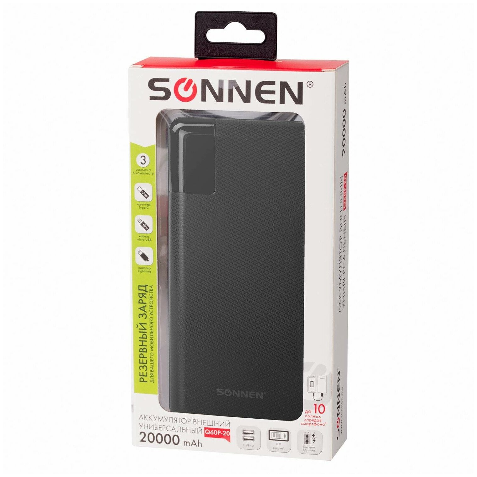 Аккумулятор внешний Sonnen 20000 mah q60p 2usb, литий-полимерный (263033)