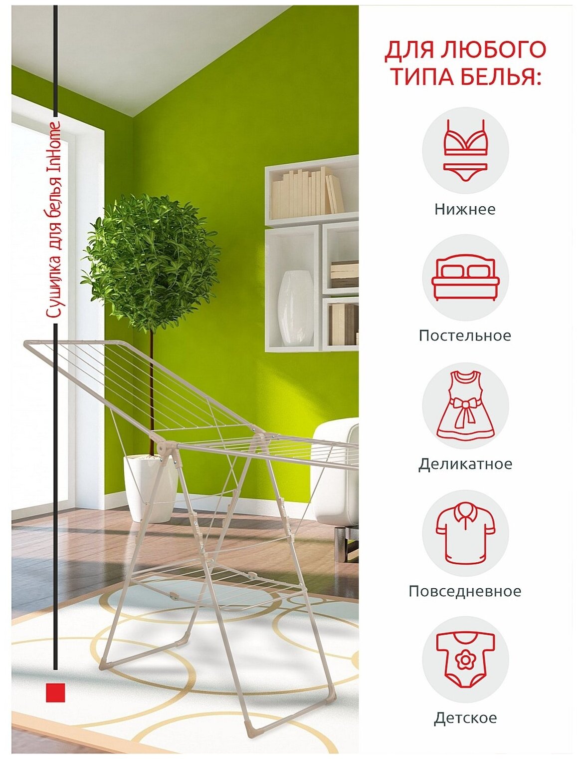 Большая складная сушилка для белья напольная 21 метров InHome INCD3/1