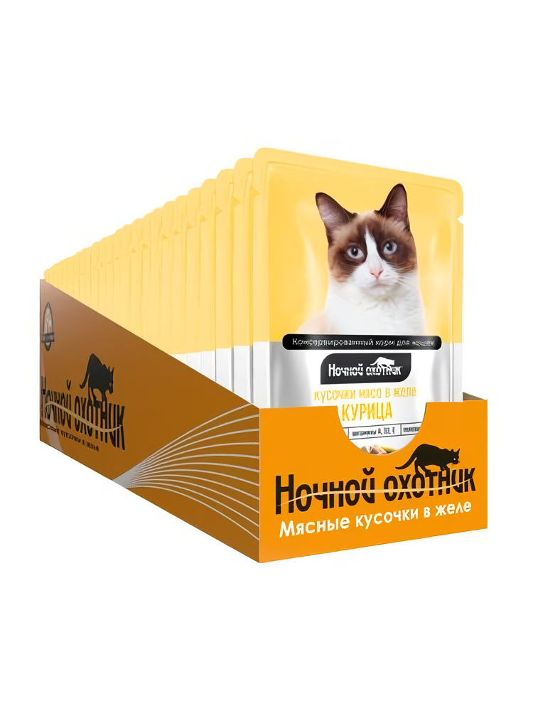 Ночной охотник для взрослых кошек с курицей в желе (100 гр х 24 шт)
