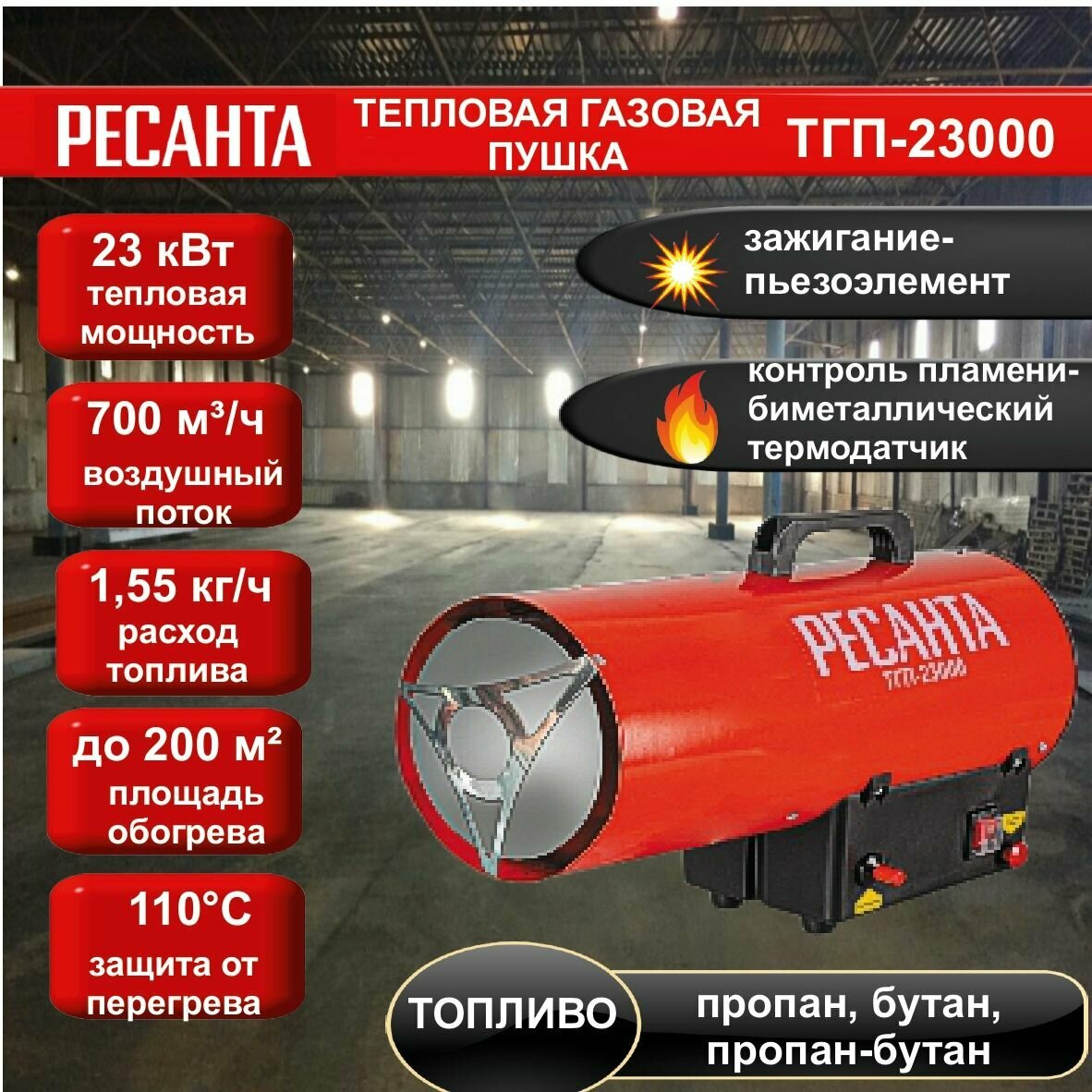 Тепловая газовая пушка ТГП-23000 Ресанта, , Шт интересное: