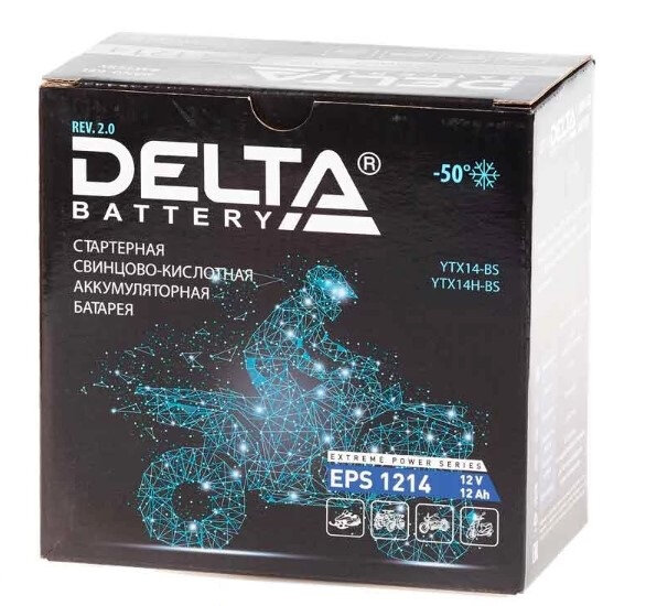Аккумулятор DELTA EPS 1214 (YTX14-BS, YTX14H-BS, YTX16-BS, YB16B-A) для скутера, мотоцикла, квадроцикла, снегохода DELTA-EPS-1214