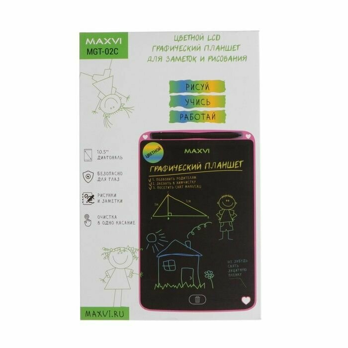 Графический планшет для рисования и заметок LCD Maxvi MGT-02С, 10.5",цветной дисплей,розовый интересное: