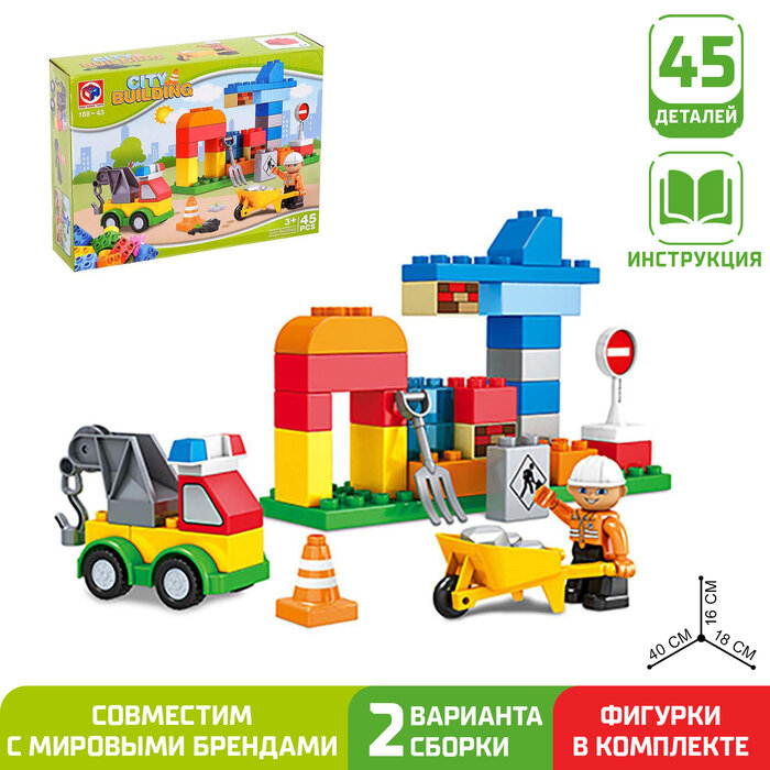 KIDS HOME TOYS Конструктор «Городские строители», 45 деталей