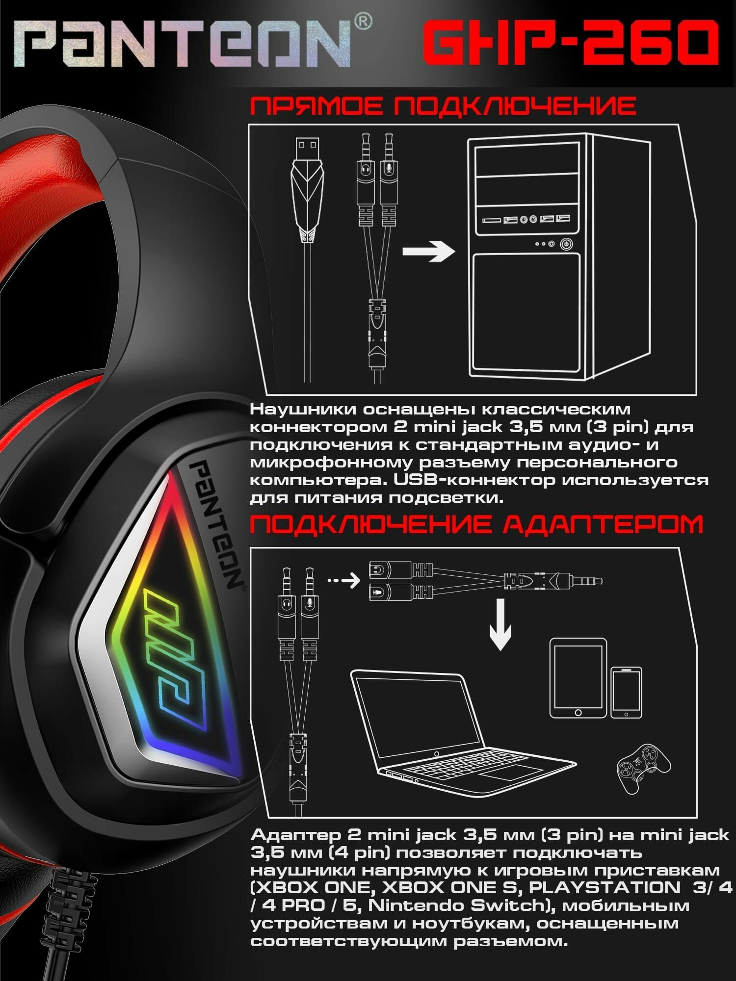 Игровые наушники С микрофоном PANTEON GHP-260 красные интересное: