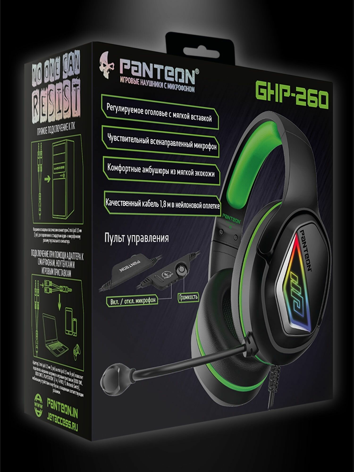 Игровые наушники С микрофоном PANTEON GHP-260 зеленые интересное: