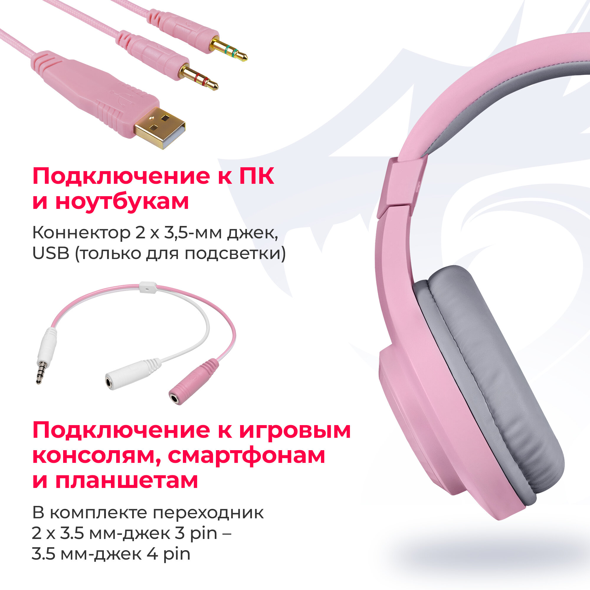 DEFENDER Гарнитура DEFENDER REDRAGON Hylas розовый интересное: