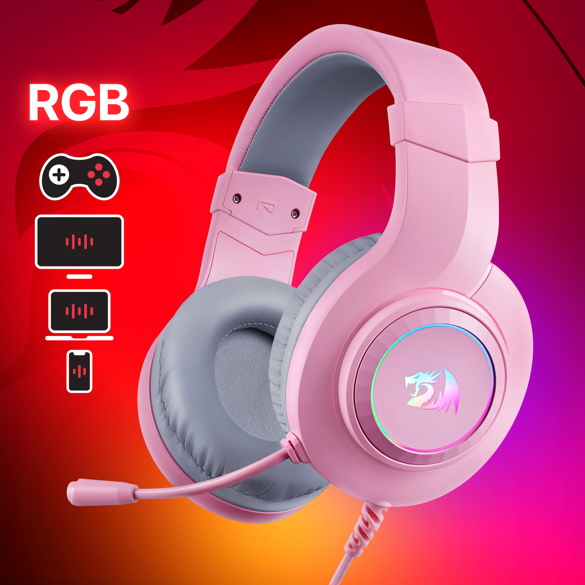 Defender Гарнитура GAMING WIRED RGB PINK HYLAS 70746 REDRAGON