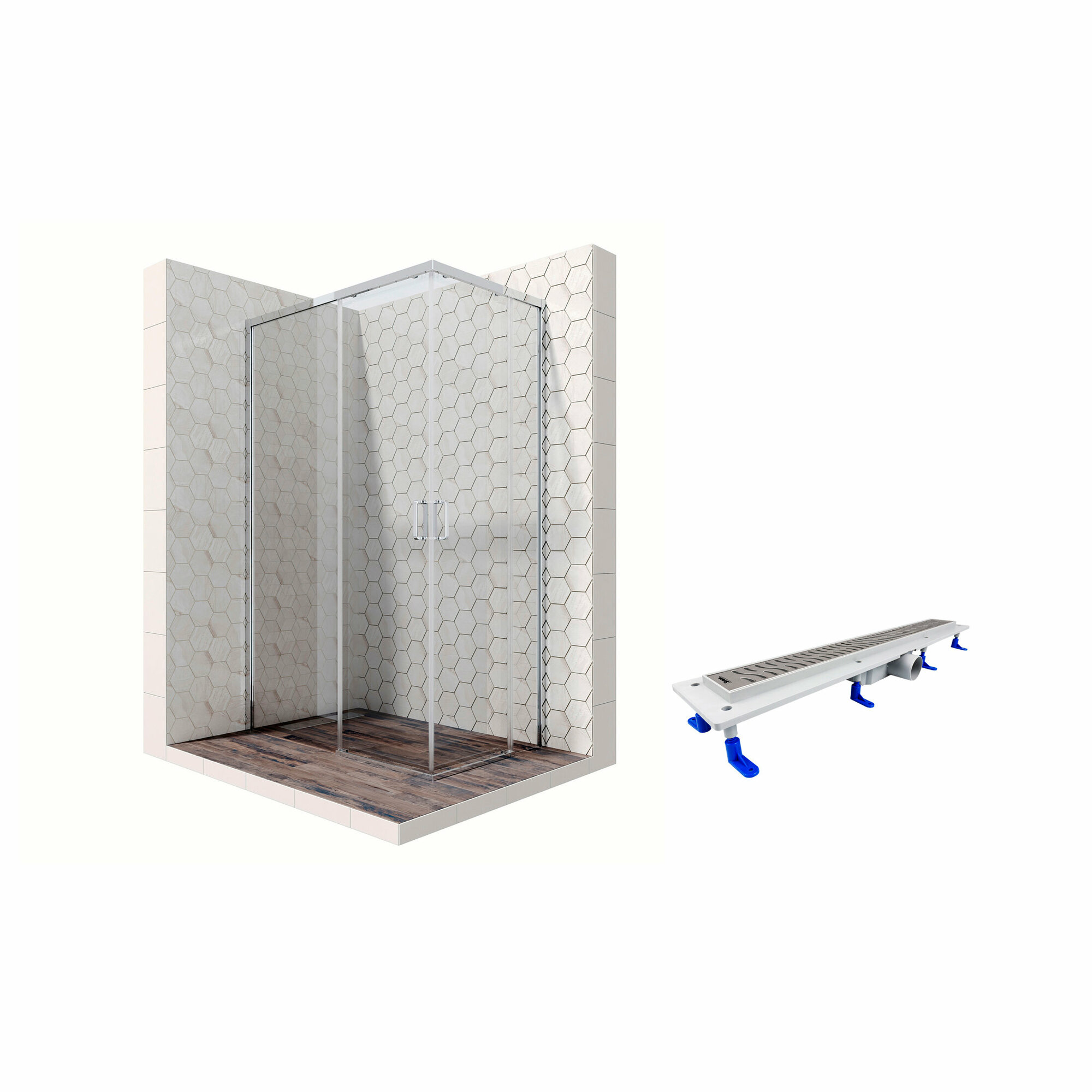 Комплект прямоугольного душевого ограждения с линейным трапом Ambassador Queen 11011106R-ST3, с EasyClean, 120 х 80 см