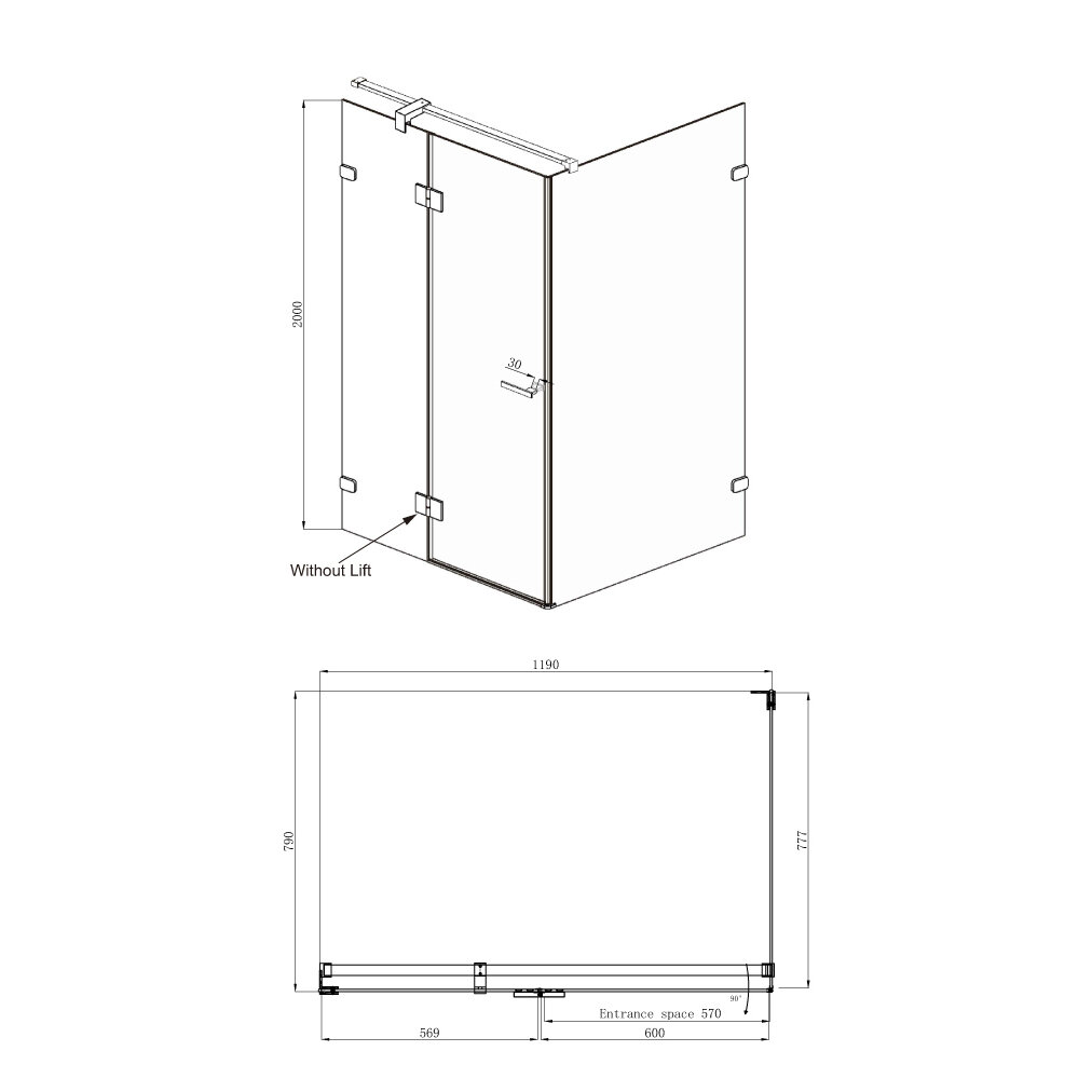 Душевой уголок 120х90 с трапом и распашной дверью Ambassador Abner 10011104L-ST3: левостороннее душевое ограждение из стекла 6 мм, профиль хром