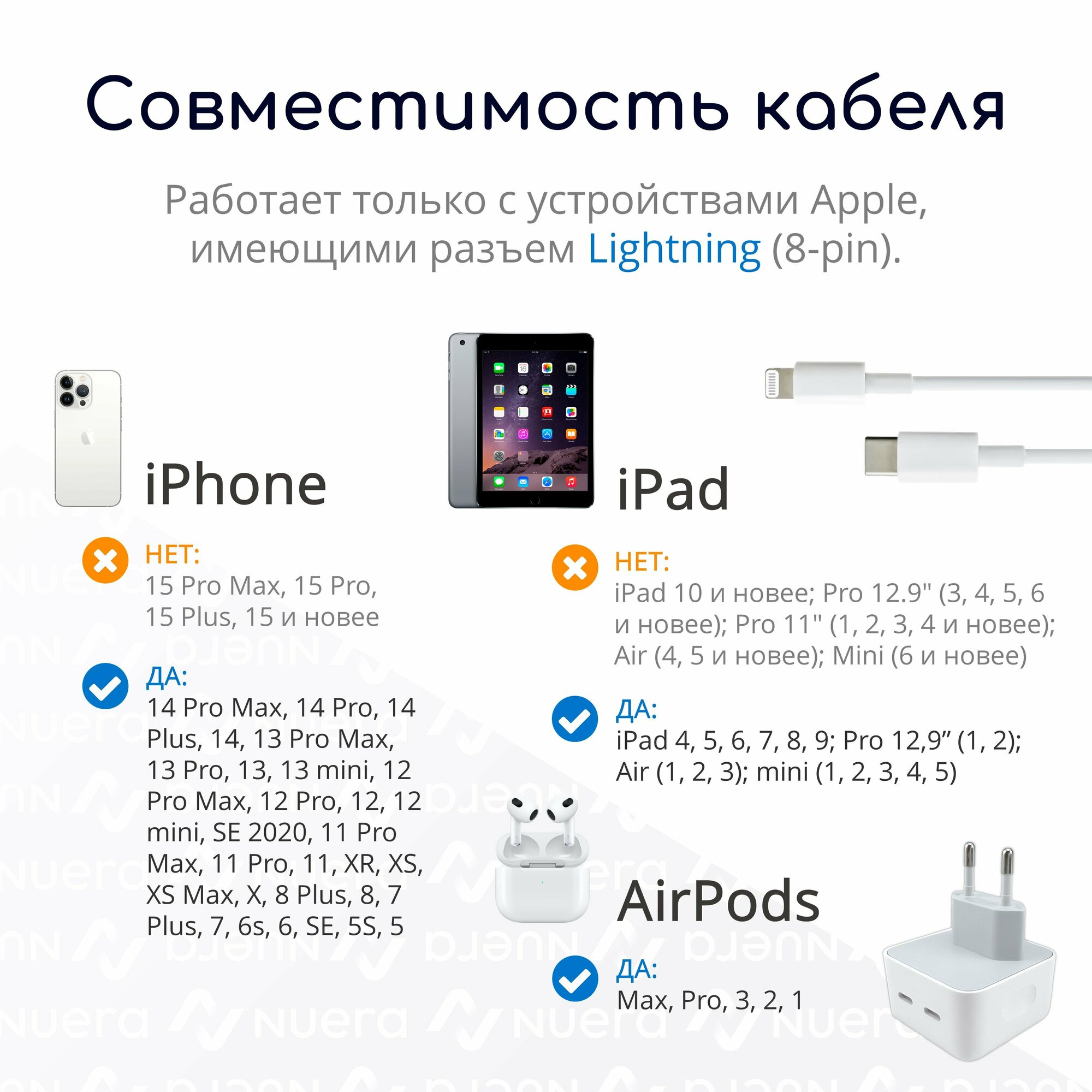 | Подробная комплектация | Адаптер питания с 2 разъёмами USB Type-C мощностью 50 Вт (1 шт.), кабель со штекерами USB Type-C и Lightning длиной 1 метр (1 шт.). |