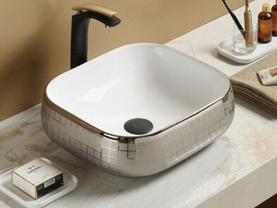 Раковина накладная CeramaLux NC 78321 45х40 см, белый/серебро