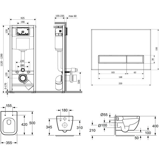 | Плюсы: | спасение для узких и мелких комнат. работает бесшумно, что плюс, если помещение сопряжено с комнатами отдыха. Спуск воды мощный. кнопки удобные (эконом+полный). |
