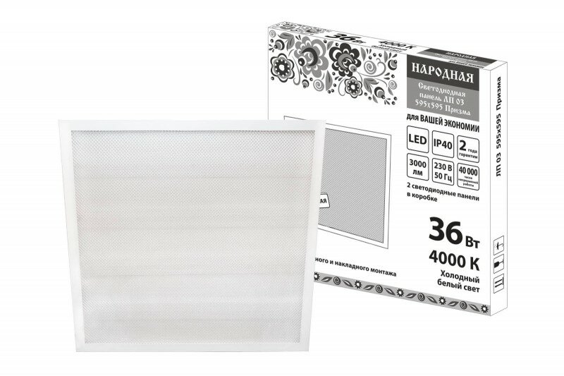Светодиодная панель универсальная ЛП 03 595х595 Призма 19 мм 36 Вт 3000 Лм, 4000 К, белая, Народная, TDM SQ0329-0239 (4 шт.) интересное: