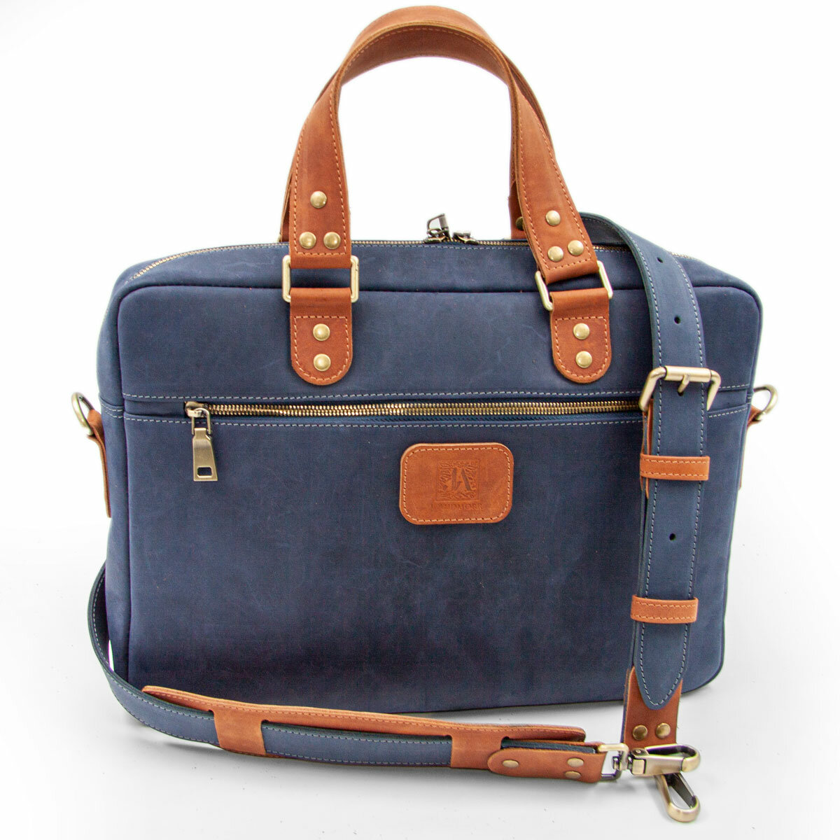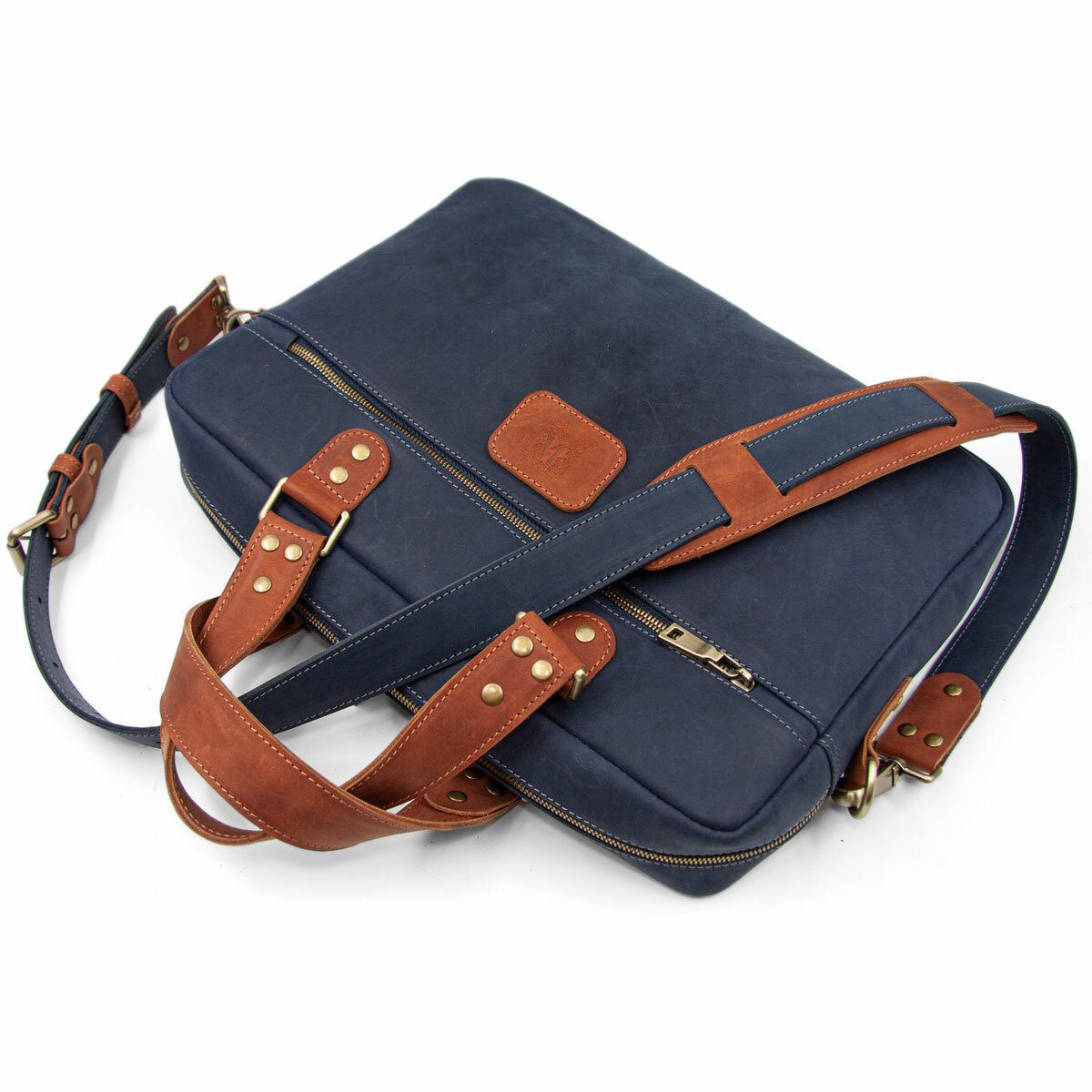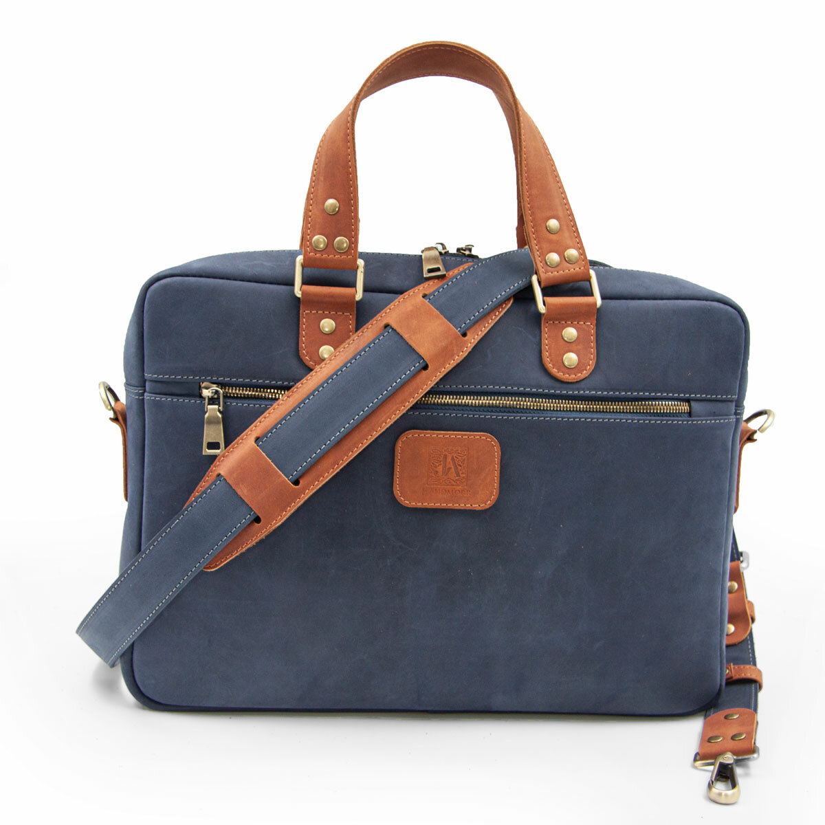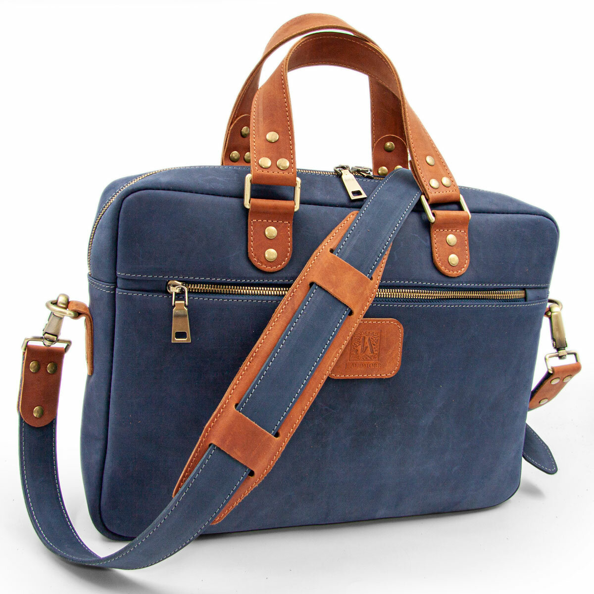 Небольшая кожаная сумка для ультрабука / макбука / ноутбука J.Audmorr до 14 дюймов, Cardiff S Saphire, натуральная кожа, ручная работа