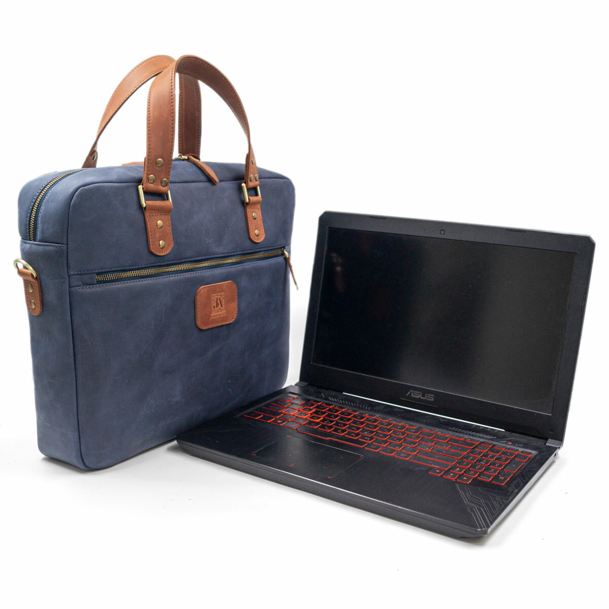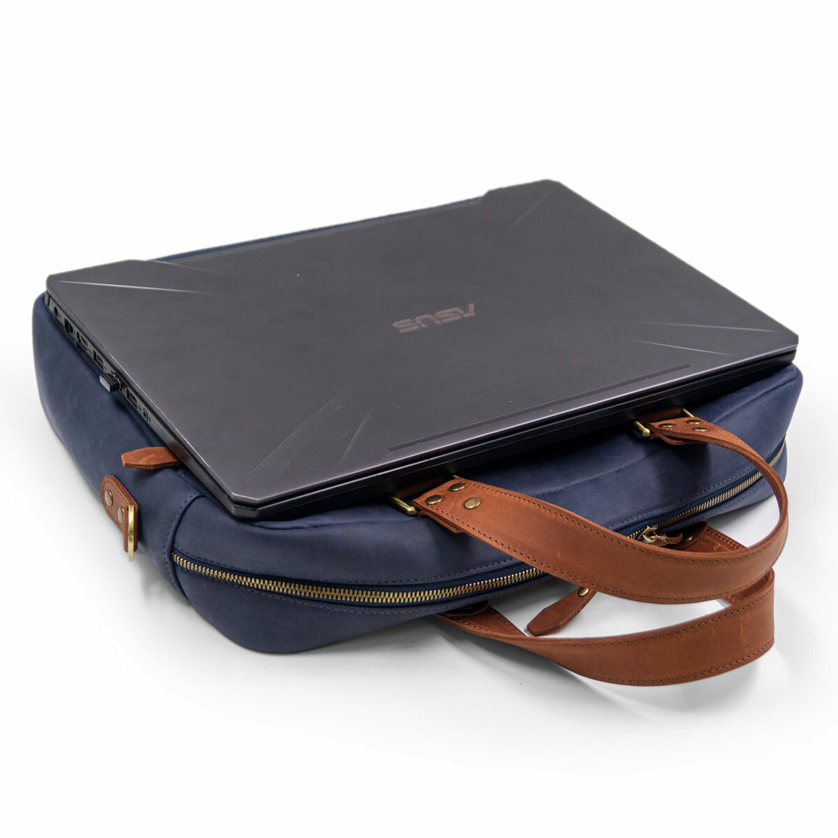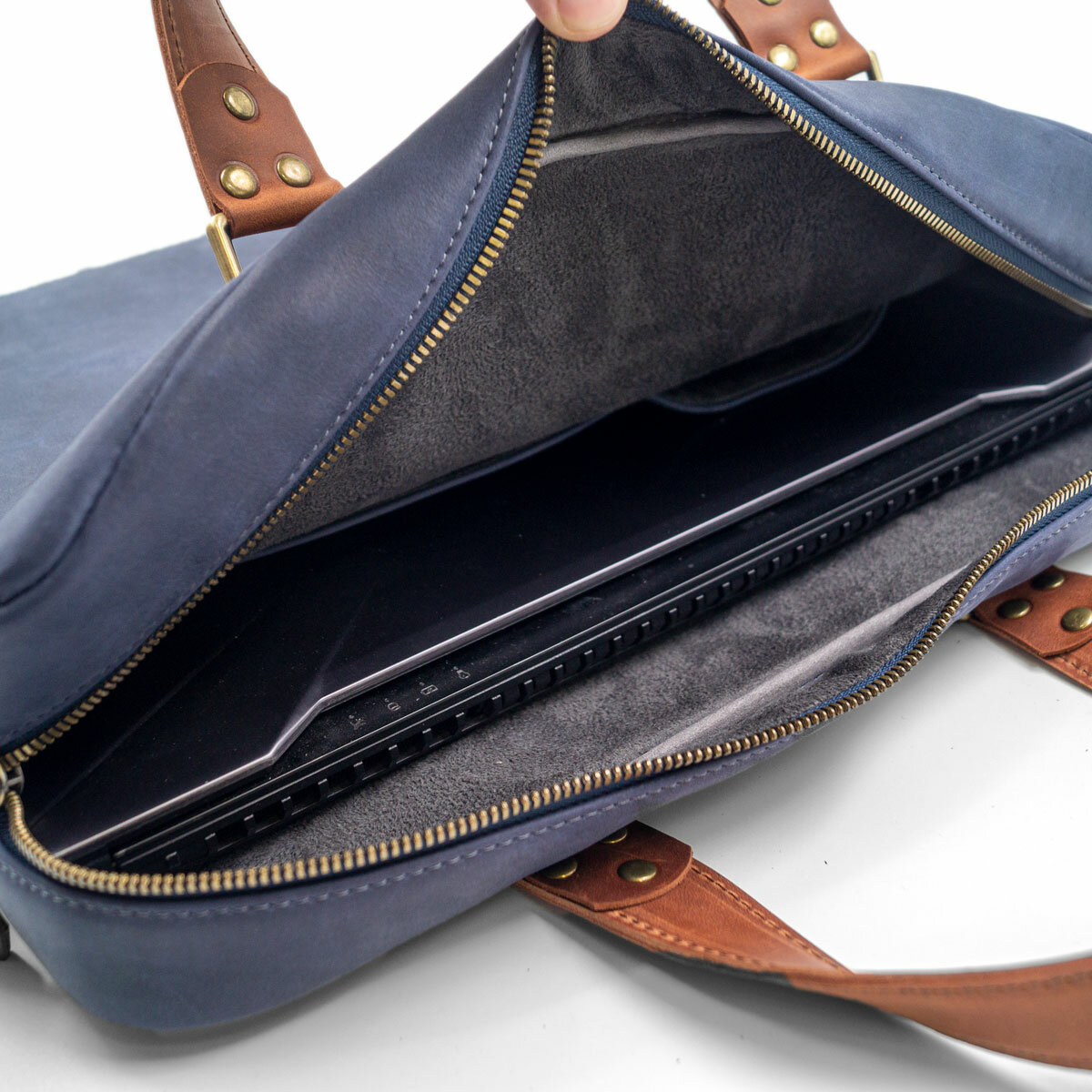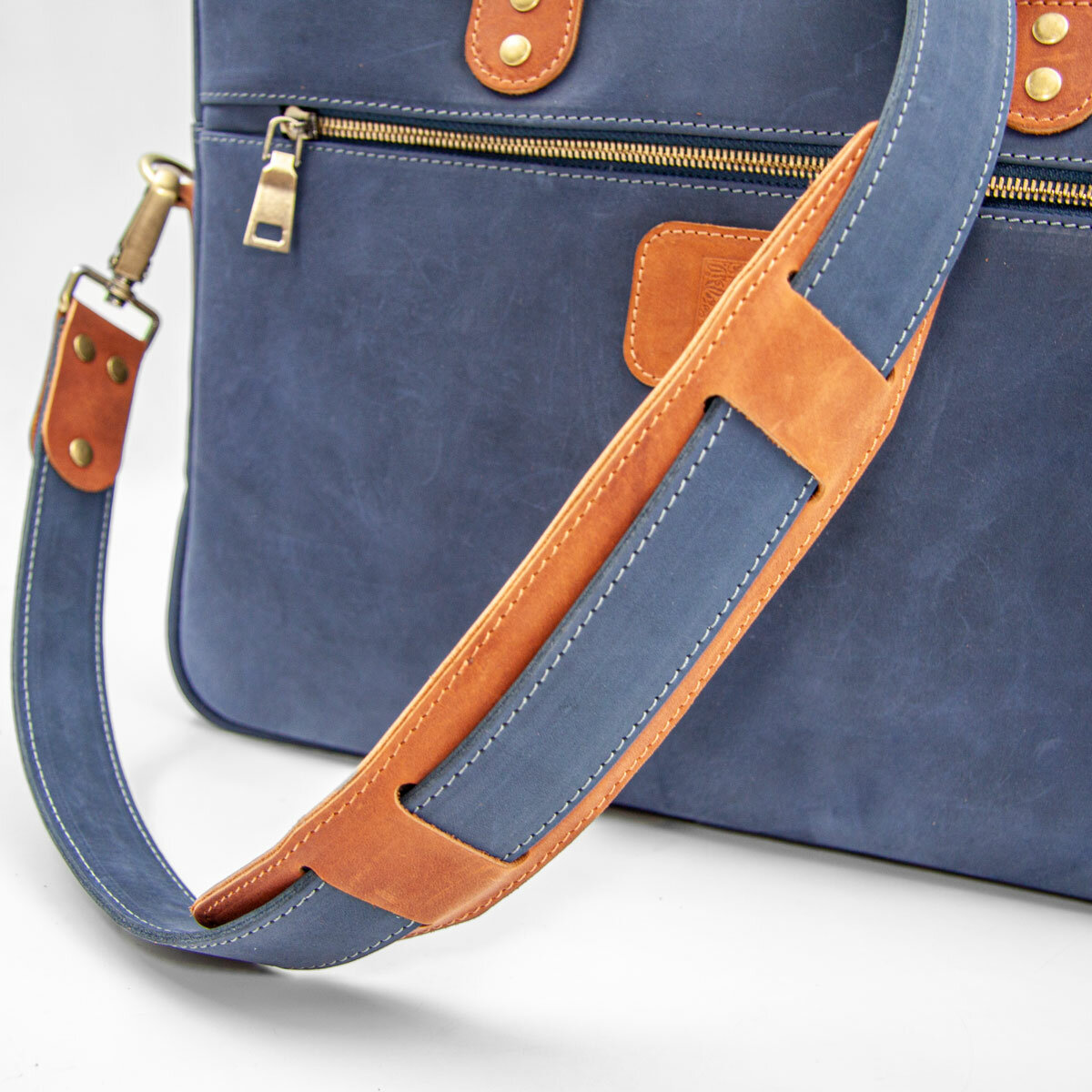 Небольшая кожаная сумка для ультрабука / макбука / ноутбука J.Audmorr до 14 дюймов, Cardiff S Saphire, натуральная кожа, ручная работа