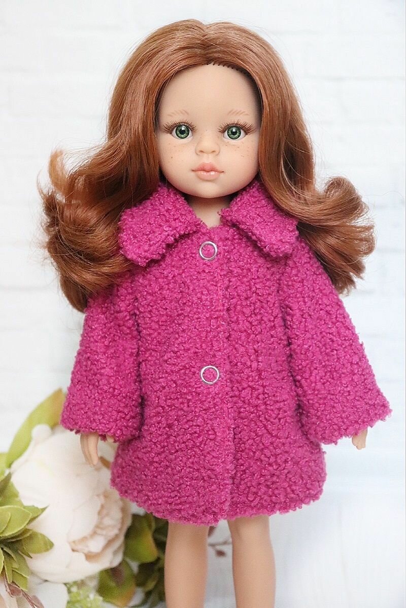 Одежда для кукол 32-35см Paola Reina, Vidal Rojas, Berjuan и др, Шубка для кукол, фуксия (ягненок)