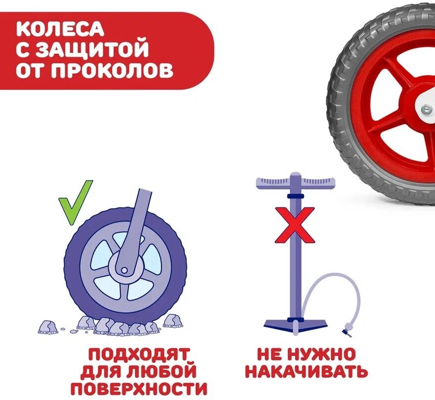 | Плюсы: | Прочный, металлический беговел с бескамерными колесами |