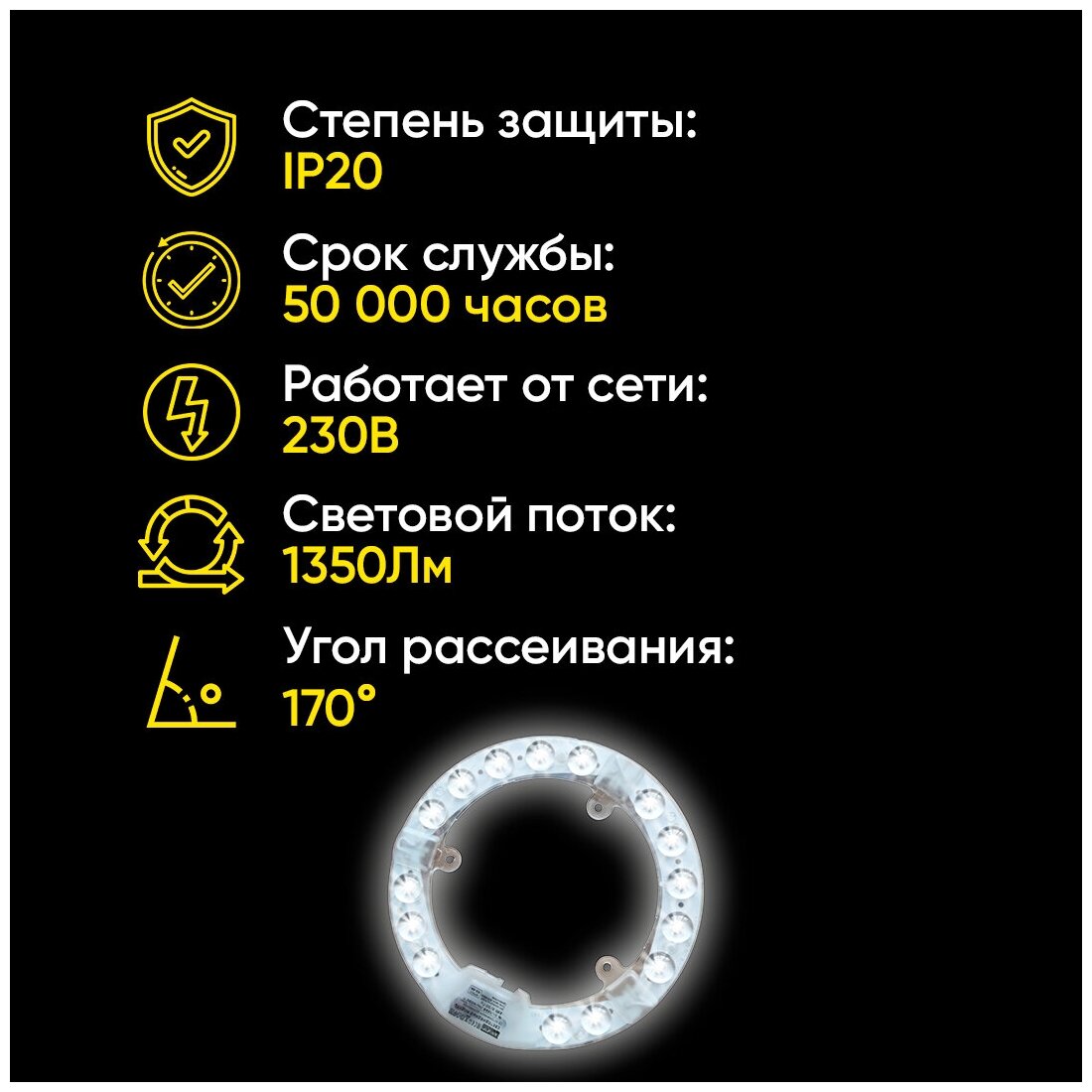 Модуль светодиодный Apeyron 02-56 со встроенным драйвером, напряжение 220В, обладает белым цветом свечения 4000K, излучает световой поток равный 1350Лм/д / smd2835 / 15Вт / гарантия 1 год