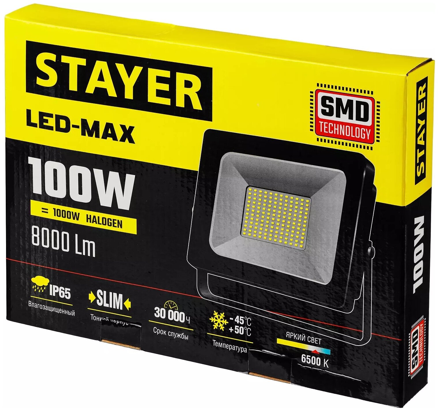 Светодиодный прожектор STAYER 100 Вт, LED-MAX
