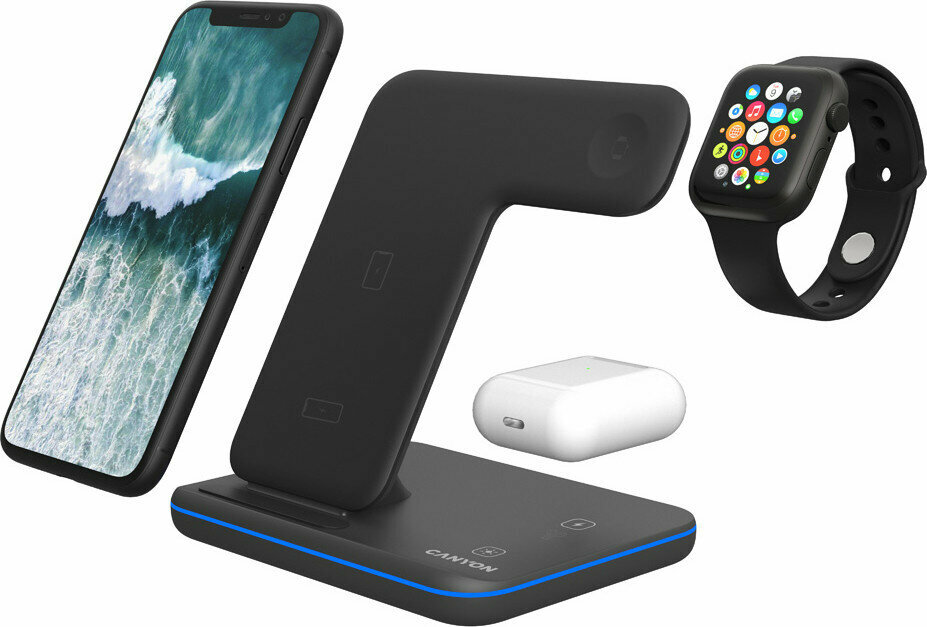 Беспроводное зарядное устройство Canyon 3в1 с технологией Qi CNS-WCS303B