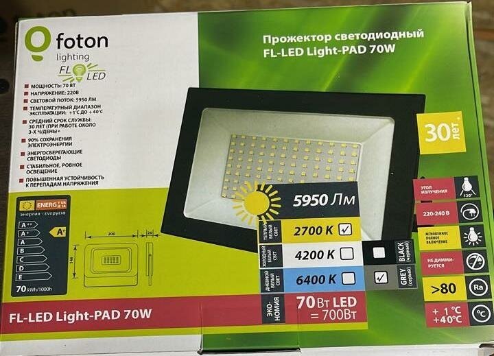FL-LED Light-PAD 70W Grey 2700К 5950Лм 70Вт AC220-240В 275x200x33мм 1640г-Прожектор интересное: