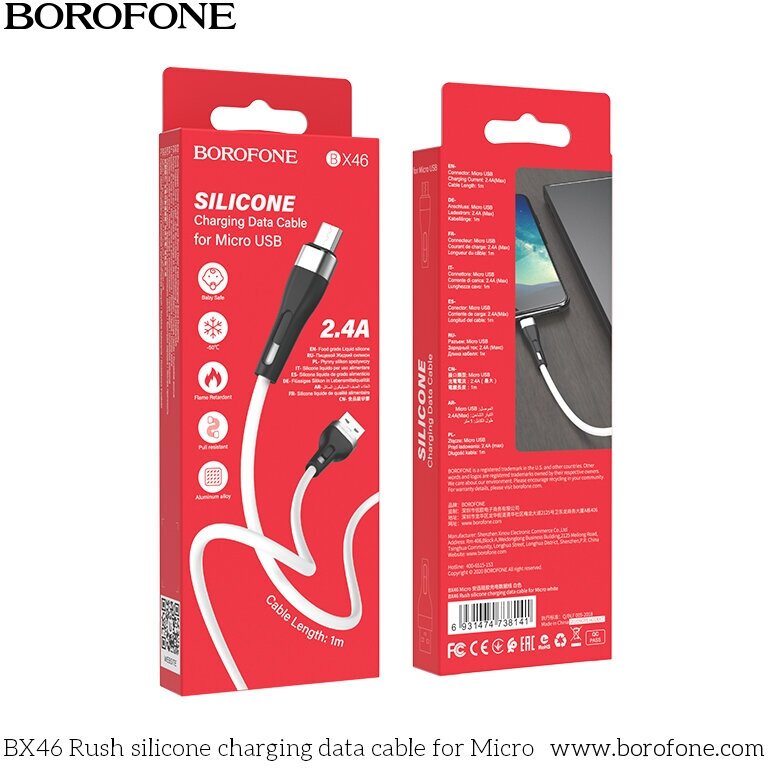 Кабель USB-Micro USB BOROFONE BX46 Rush silicone 2.4A 1м белый интересное: