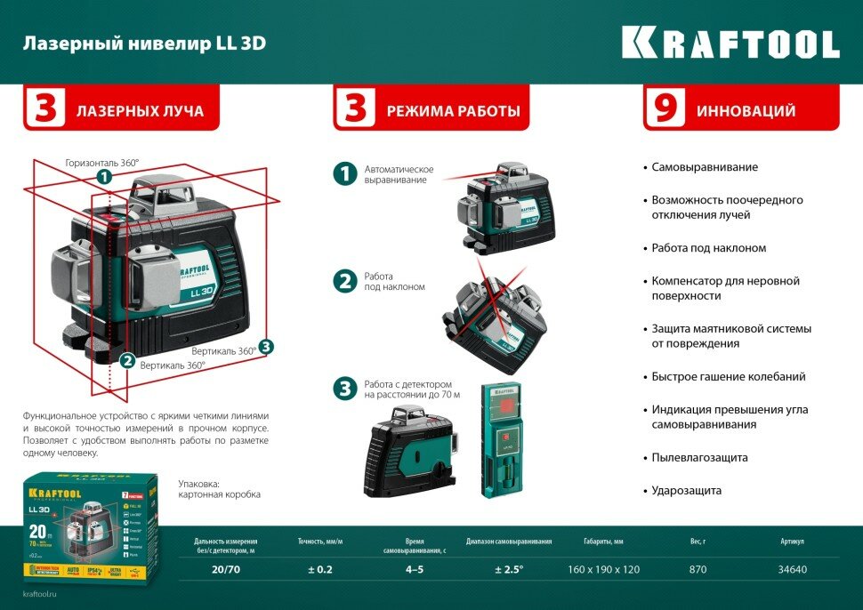 KRAFTOOL LL 3D нивелир лазерный, в коробке (34640_z01) интересное: