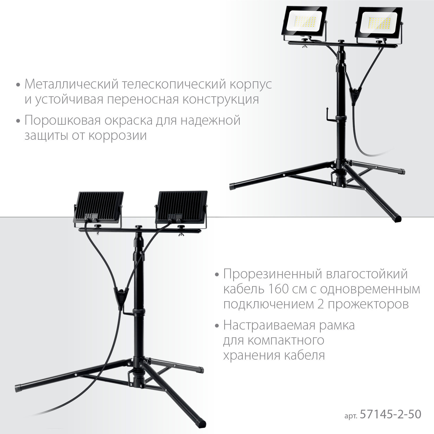ЗУБР ПСК 50х2 2х50Вт, 6500К IP65, 1.6м Светодиодные прожекторы на штативе Профессионал (57145-2-50) интересное: