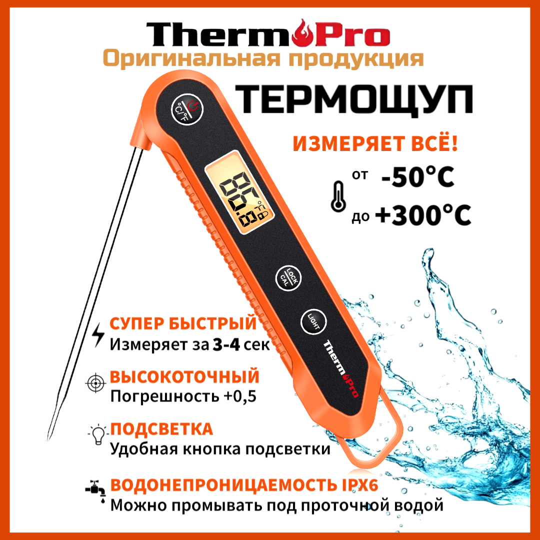 Термощуп складной/ Кулинарный термометр с термощупом/ Термометр для мяса/ ThermoPro TP-03H / Влагозащитный интересное: