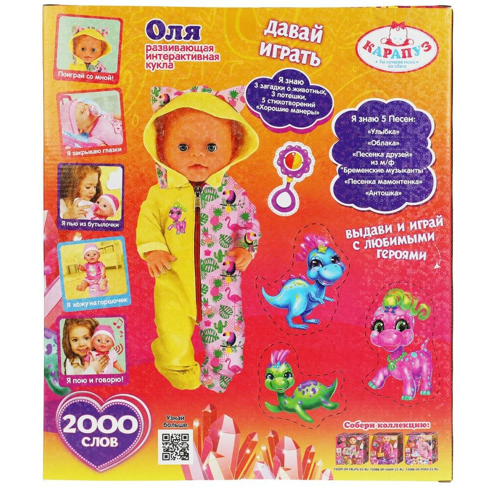 Купить Пупс Шаинский музыка, Оля, 35 см. пьет, писает, 2000 слов Карапуз Y35BB-DP-DINO-22-RU