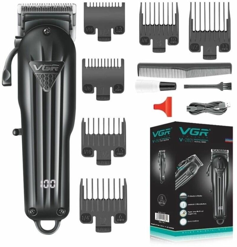 Профессиональная машинка для волос и бороды VGR, 6 сменных насадок, аккумулятор