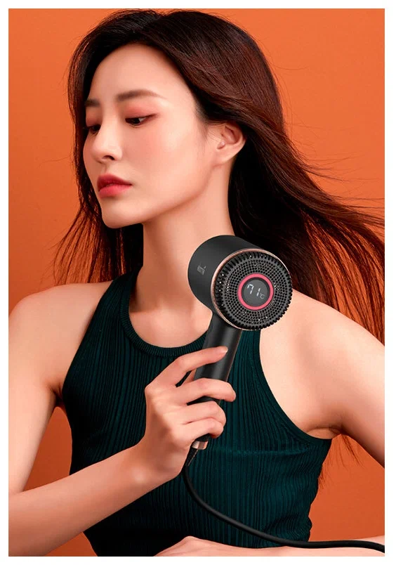 Фен Deerma DEM-CF20W 1600Вт, черный, компактный, с дисплеем и ионизацией, 2 режима, защита от перегрева, 490 г