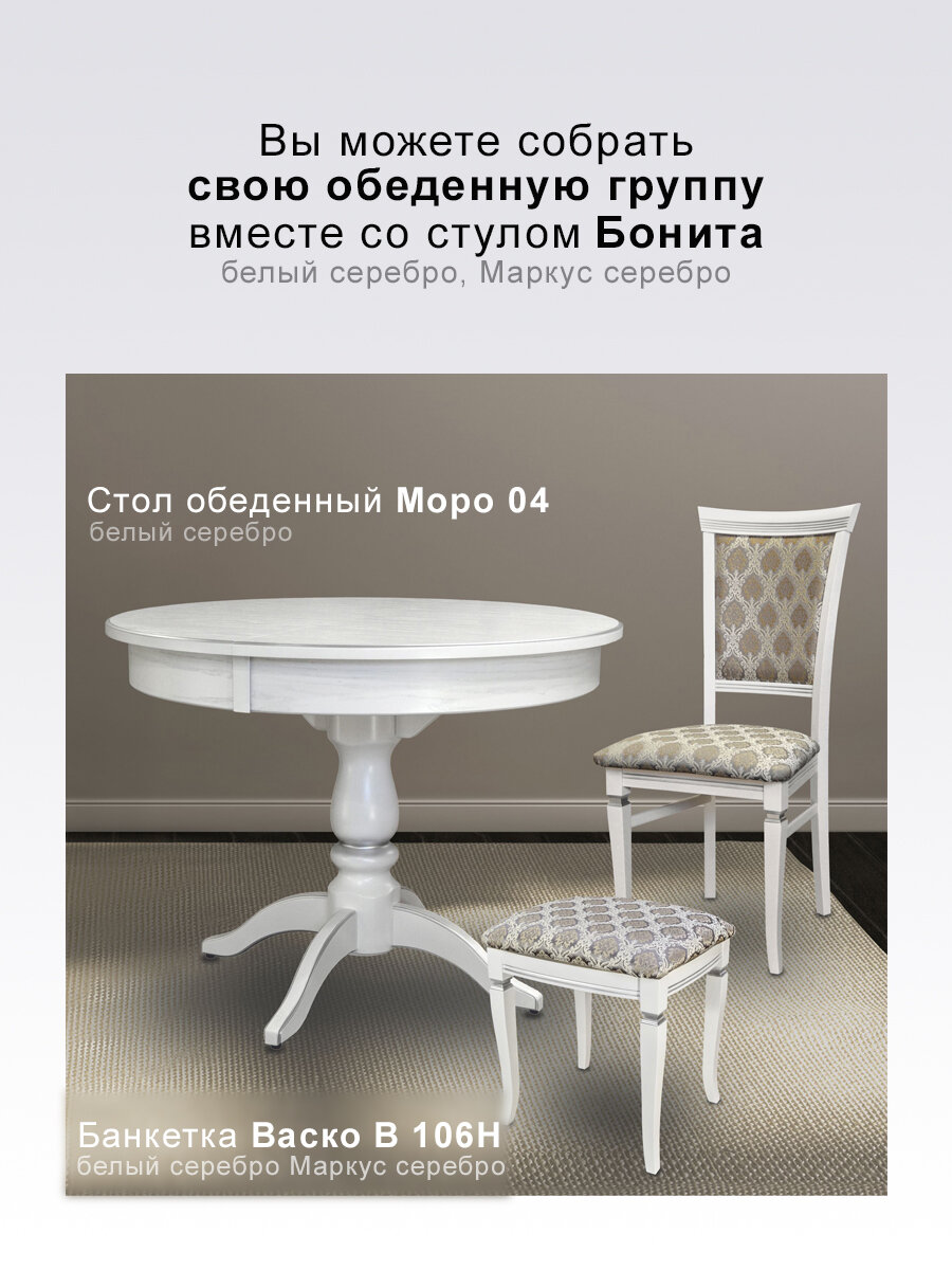 Стул кухонный Мебелик Бонита на ножках, мягкий, со спинкой белый/серебро, Маркус серебро