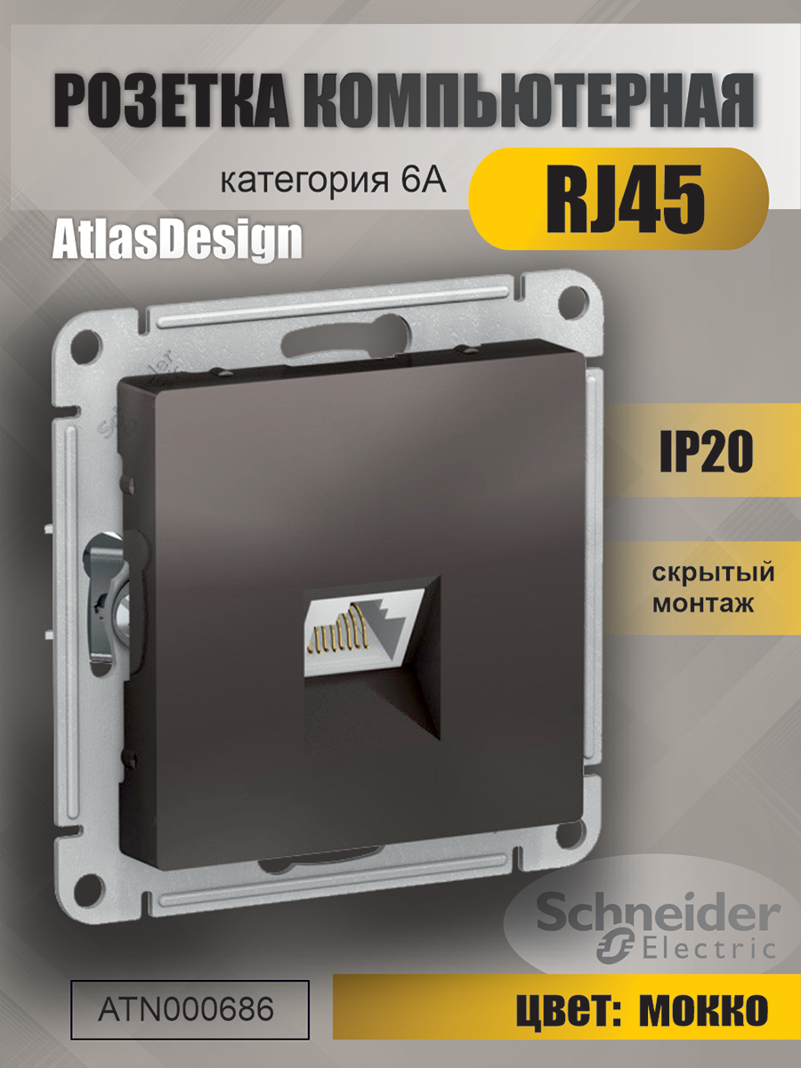 СохранитьSE AtlasDesign Мокко Розетка компьютерная RJ45, кат. 6A, механизм интересное: