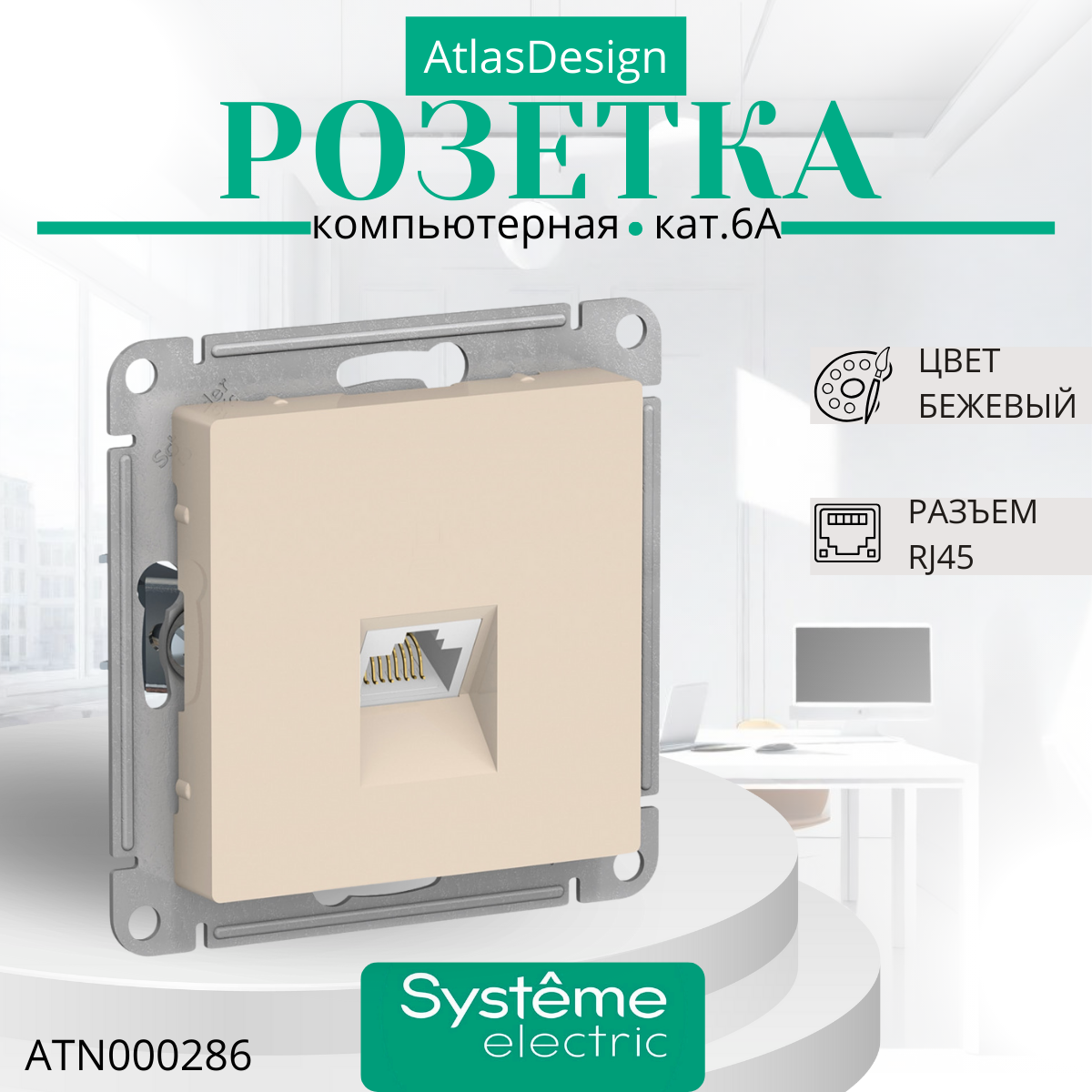 Розетка компьютерная RJ45 Systeme Electric (schneider Electric) SCHNEIDER ELECTRIC AtlasDesign, кат. 6A, механизм, бежевый