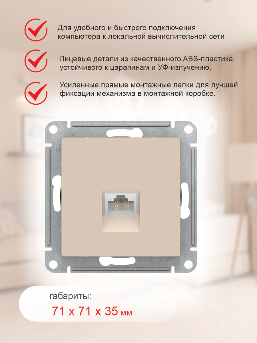 ATLASDESIGN розетка компьютерная RJ45, кат. 6A, механизм, песочный