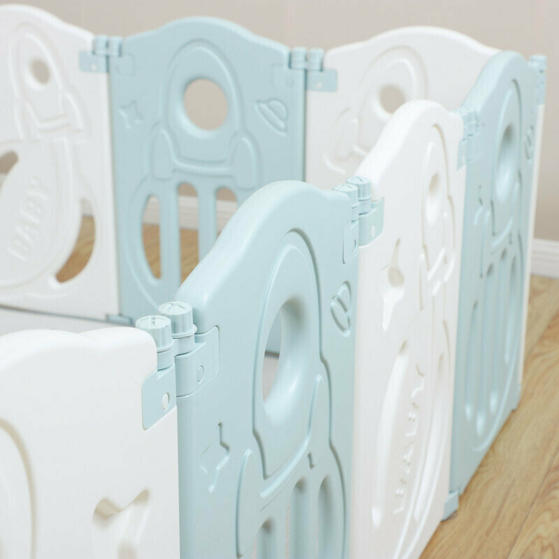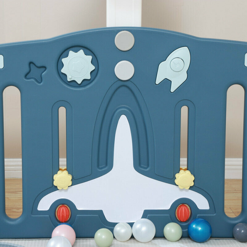 Манеж UNIX Kids "SUPREME Space" Blue, голубой/синий, 200x240 см, с ковриком, горкой и баскетбольным кольцом для дома и улицы
