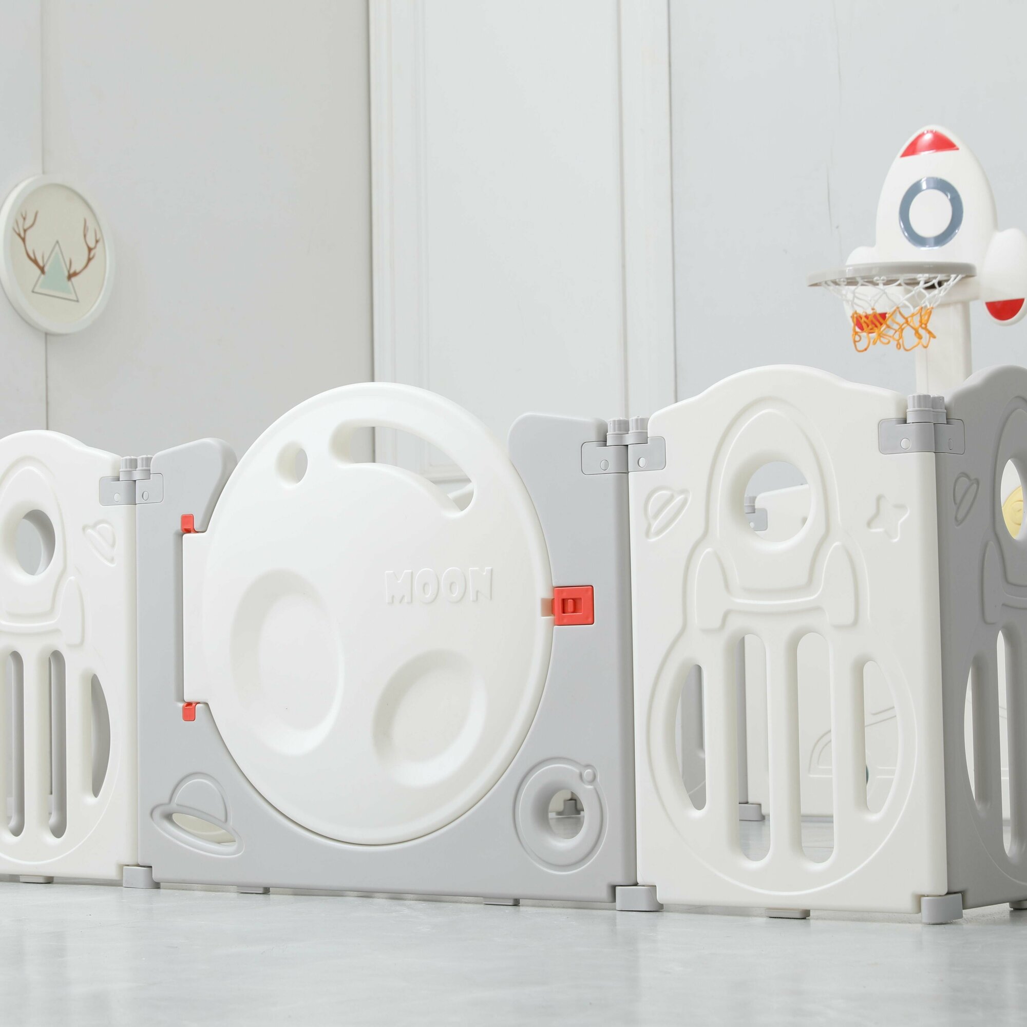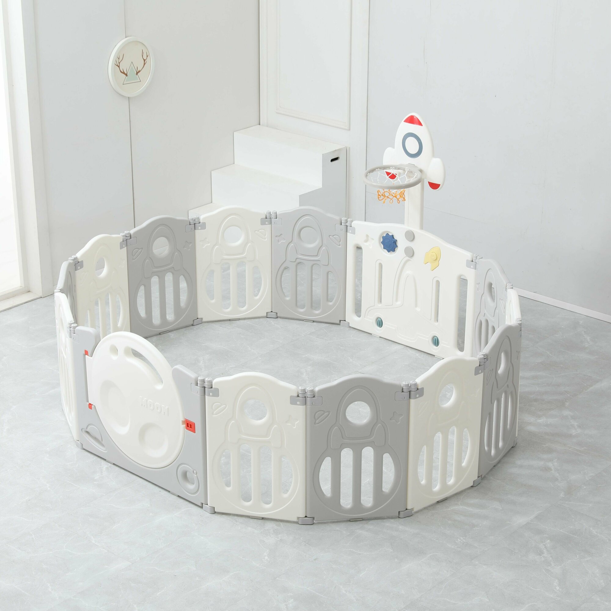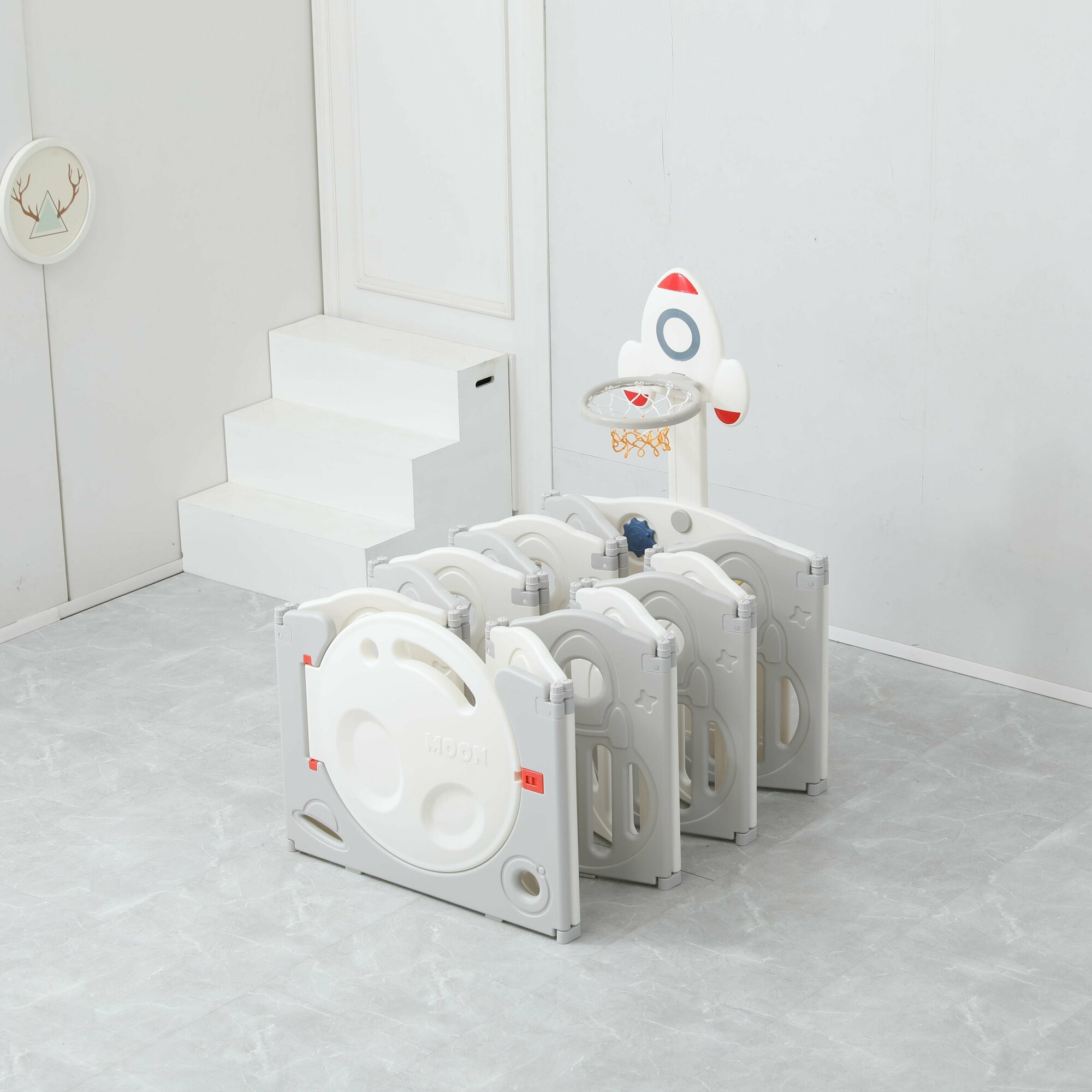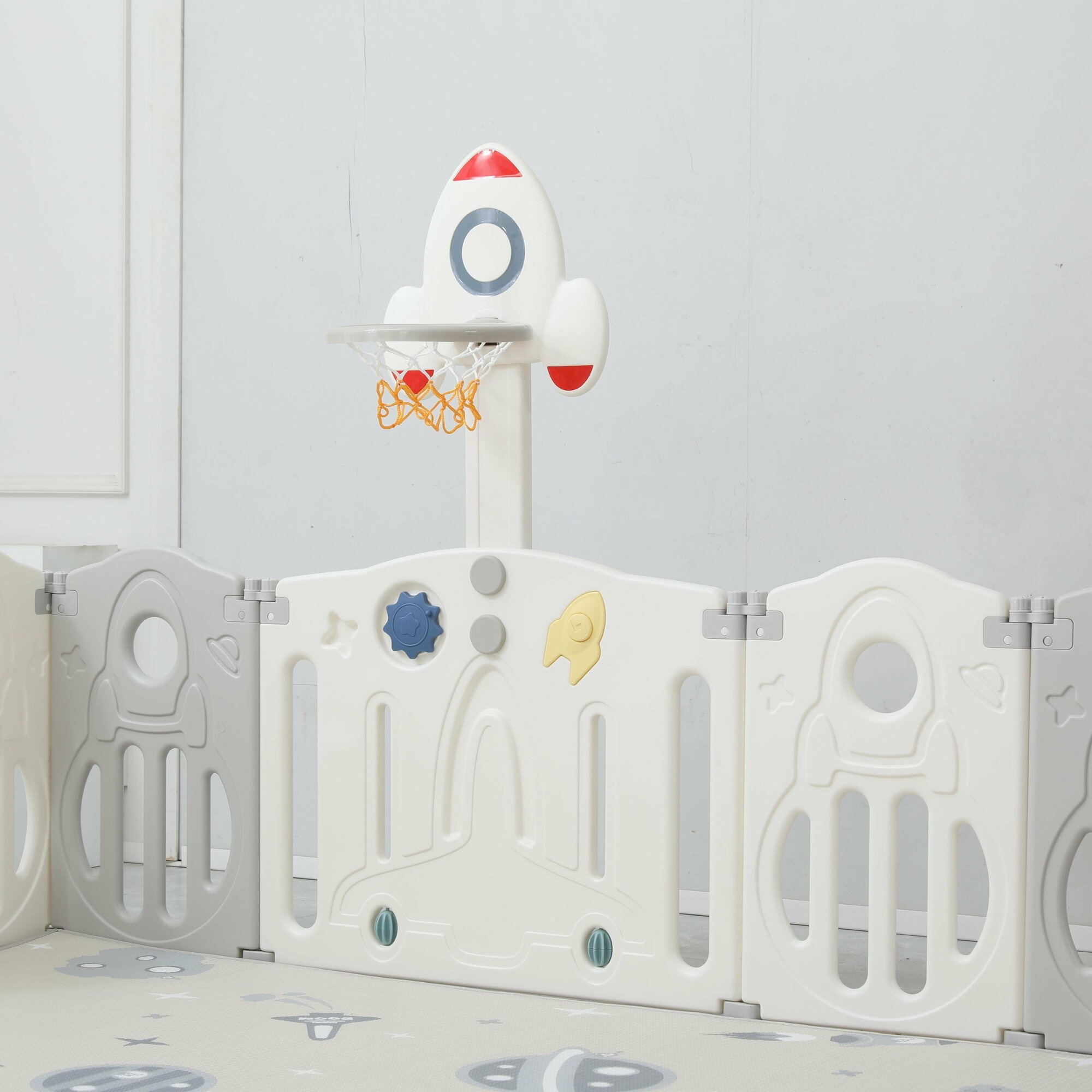 Купить Манеж UNIX Kids "SUPREME Space" Grey, серый, 200x240 см, с качелями, ковриком, горкой и баскетбольным кольцом для дома, улицы